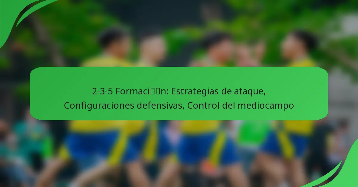 La formación 2-3-5 es una estrategia clásica de fútbol que cuenta con dos defensores, tres centrocampistas y cinco delanteros, priorizando un juego de ataque agresivo. Esta disposición no solo maximiza las oportunidades de gol, sino que también asegura el control del centro del campo para apoyar tanto las transiciones ofensivas como las responsabilidades defensivas. Las estrategias defensivas efectivas dentro de esta formación requieren una fuerte comunicación y adaptabilidad entre los jugadores para contrarrestar los movimientos del oponente.