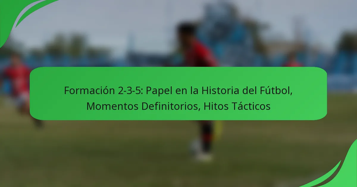 La formación 2-3-5, un esquema táctico clásico en el fútbol, ha desempeñado un papel significativo en la configuración de la historia del juego. Sus momentos definitorios incluyen partidos clave y el surgimiento de equipos legendarios que utilizaron esta formación, llevando a innovaciones tácticas que influenciaron estrategias futuras.