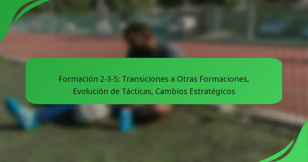 La formación 2-3-5 puede transitar a varias formaciones modernas, adaptándose al paisaje táctico en evolución del fútbol. Las transiciones clave incluyen cambios a las formaciones 4-2-4, 4-3-3 y 3-5-2, cada una ofreciendo ventajas estratégicas y flexibilidad en el juego.