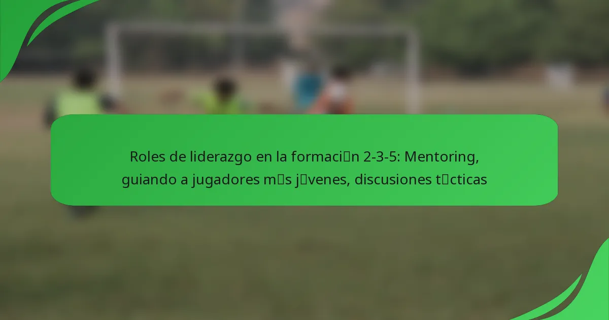 La formación 2-3-5 se basa en gran medida en roles de liderazgo distintos que mejoran la dinámica y el rendimiento del equipo. Cada posición, desde el delantero central hasta los líderes defensivos, juega un papel crucial en la orientación de los jugadores más jóvenes y en la facilitación de discusiones tácticas.