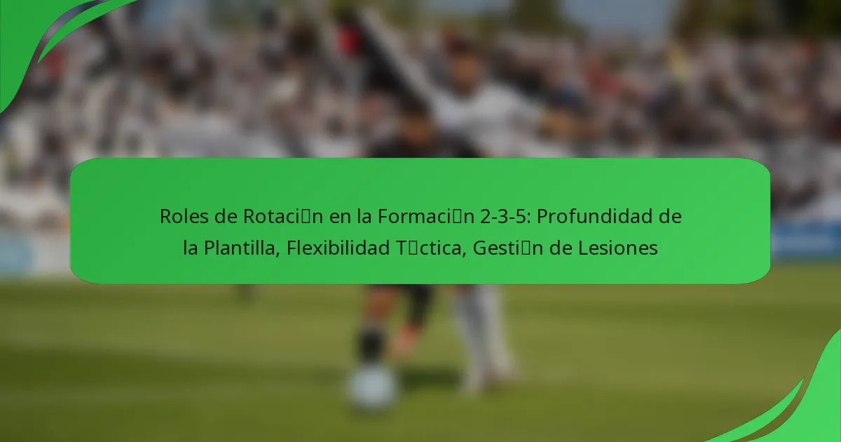 La gestión efectiva de lesiones en la formación 2-3-5 implica una combinación de rotación de jugadores, monitoreo de la condición física y protocolos de recuperación. Estas estrategias no solo ayudan a minimizar los riesgos de lesiones, sino que también mejoran el rendimiento general del equipo y la flexibilidad táctica.